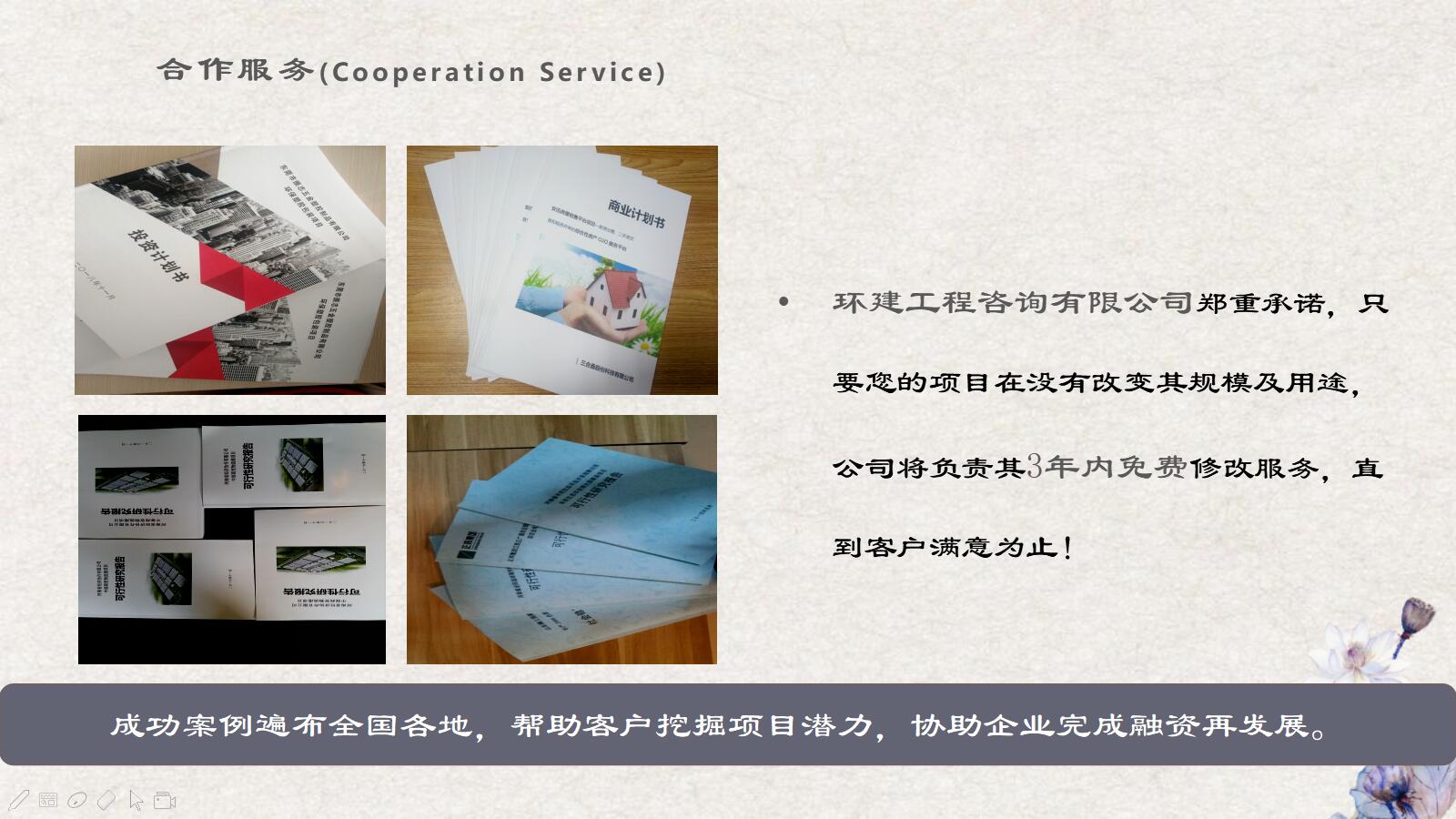 环建工程咨询有限公司形成了以可行性报告编写项目建议书以及平面图、概念设计规划和鸟瞰图制作等主营业务模块。凭借一支支精英团队和一个个典范项目,沉淀出极富全心特色的市场研究、、产品定位、专业编写等知识体系,贯穿项目链条,整合上下游资源,持续为全心品牌提供行业竞争力。公司主营业务:写可行性报告、商业计划书、项目建议书、项目申请报告、节能评估报告、制作鸟瞰图、平面图、概念规划设计等业务。几年来,凭借一支专业化的智囊团队、规范的业务运作流程及内部管理体系,依托大量成功的案例,取得了客户、合作伙伴的广泛认同和良好的社会声誉,如今全心已成长成为品牌度的公司并奠定了行业中的优势地位。roirgnks